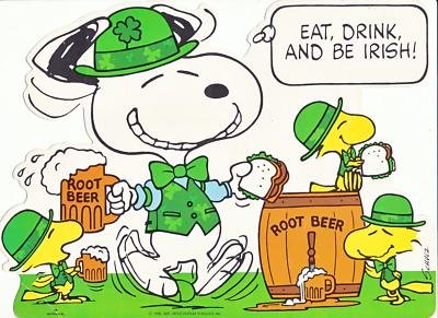 Ya que el shamrock es el símbolo de Irlanda, es típico en este día que todo se tiña de verde. Desde ropa, ríos, comida y hasta cerveza verde. Si en twitter tienen algún TT de U.S.A. o Irlanda lo mas probable es que lean que por todas partes dice Guiness, el nombre de la cerveza Stout Irlandesa mas conocida y que mas se consume en esta fecha (se venden mas de 10 millones de pintas de ésta cerveza y la marca obtiene un 10% de sus ganancias en el mes de marzo). Pionta Guinness led thoil’ es todo lo que necesitan saber (una pinta de Guinness, por favor).