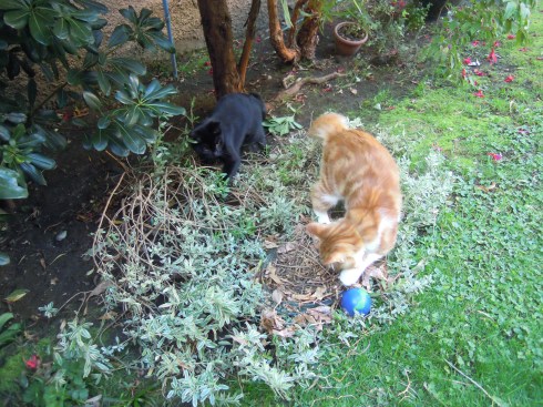 Y aquí pueden ver a Kate & William (Negrini + Rucio) encargándose de destrozar el nido que TANTO me costó construir, tuve que podar todos los árboles de la casa para esto: