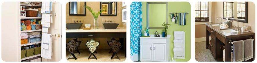 Uno de los elementos que más ocupan espacio en el baño son las toallas. Si tienes un baño pequeño es probable que las guardes en un clóset de toallas, o en tu propio clóset. Pero si cuentas con aunque sea un mínimo espacio para tenerlas en tu baño, aquí algunas ideas creativas para hacerlo: