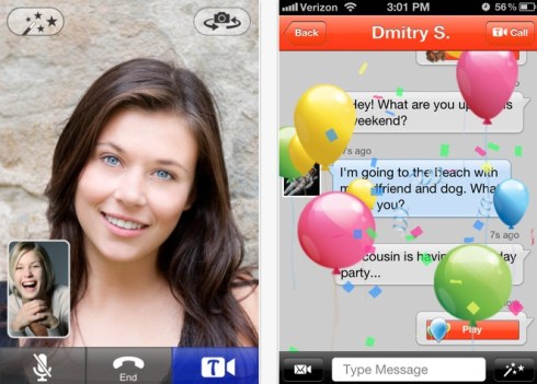 Esta es una app para hacer vídeo llamadas y enviar mensajes de vídeo, así como mensajes de texto. Lo entrete es que puedes añadir emoticones mientras haces la vídeo llamada. Es entrete, aunque muy poca gente lo usa.