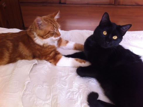 Jajajaja, qué lindos tus gatos! Me alegra que vuelvas Mila, porque me estoy quedando sin blogs para leer en mi tiempo de ocio y necesito que actualices ): jajaja