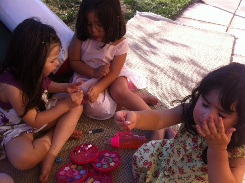 Le regalaron un montón de maquillaje y Barbies y ropa y jugamos a maquillarnos con todas las niñas….nuevamente estaba en mi salsa, demasiado feliz y emocionada que estábamos todas maquillándonos, que cosa más entretenida.