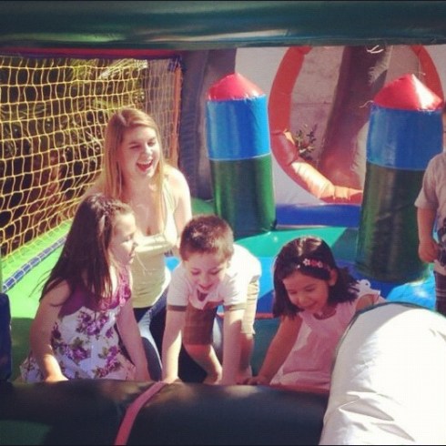 Después a las 4 comenzaba el cumple de la Emi, llegaron los niños y lo pasamos super, si, yo también andaba metida ahí con todos ellos, ósea tenían un juego inflable, como me lo iba a perder! Les puse bloqueador a todos los cabros chicos, los ayudé a sacarse las zapatillas y nos metimos todos a saltar en el juego, que manera de pasarlo bien, yo estaba en mi salsa ahí y cada vez que me salía del juego me iban a buscar para que vuelva….awww, como decirles que no!
