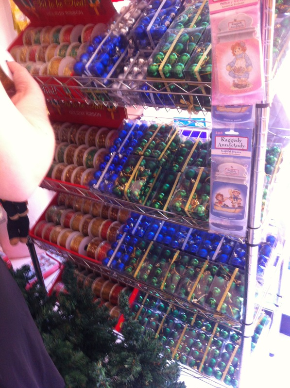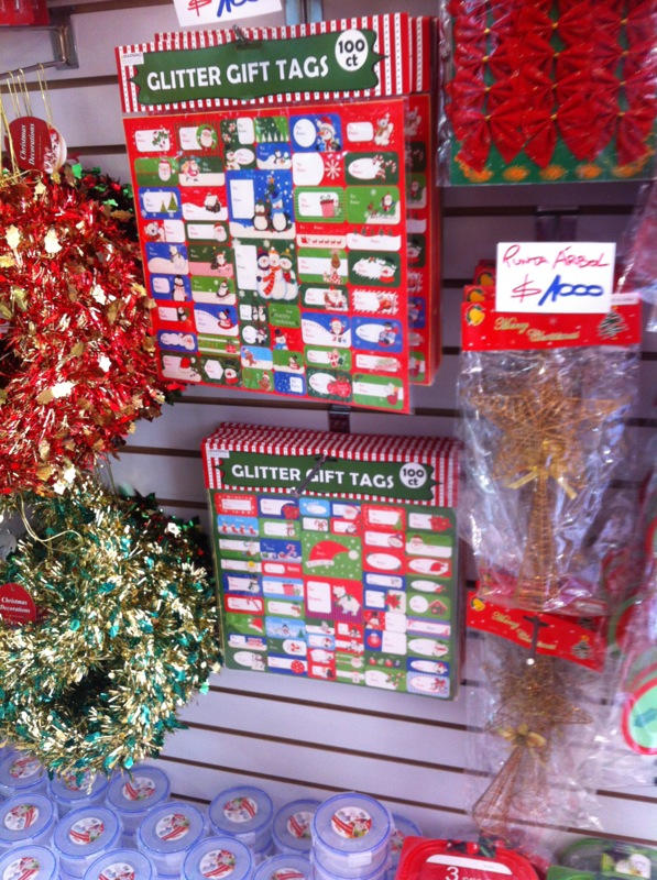 Esas cintas que ven ahí, al lado de las esferas de navidad, cuestan $500 y creo que vienen 20 metros, yo me compré dos. No sé que haré con ellas, pero algo haré.