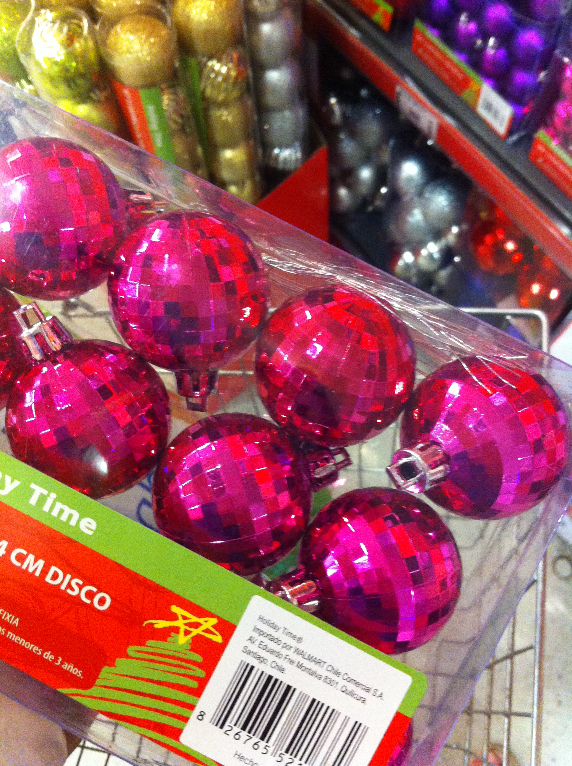 Ya, después pasé al Lider Express ahí al lado a comprar leche y cosas para almorzar y me encontré con unos adornos maravillosos, también a luca, como estas esferas disco, las amé! Me llevé las rosadas pero habían un montón de otros colores.