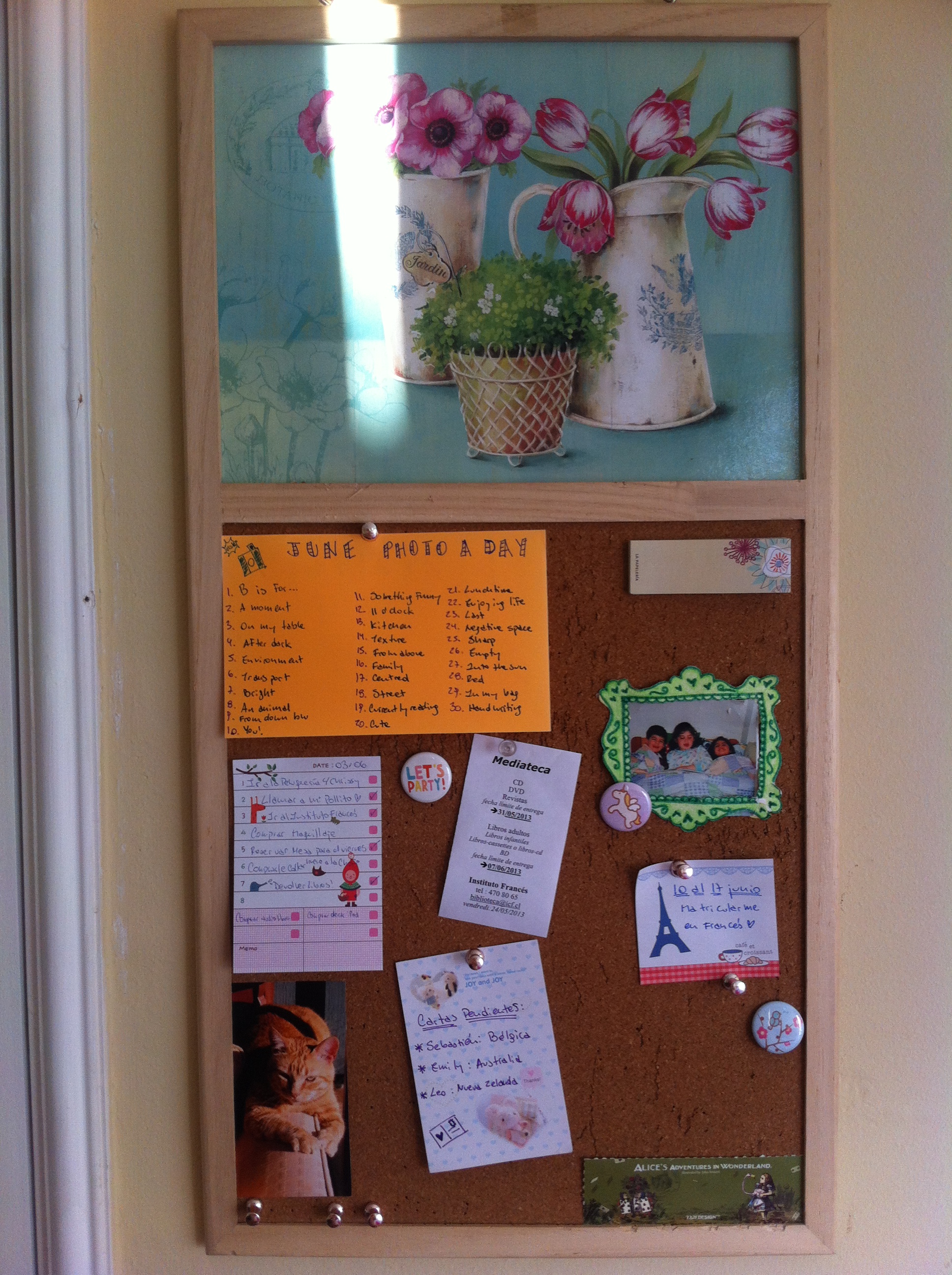 organizada¿Ven que tengo todo completamente organizado? Si se preguntan por qué mi diario mural está todo rasguñado….es porque al Rucio le gusta hacerlo mierda en la noche cuando quiere que me levante a darle comida haha.