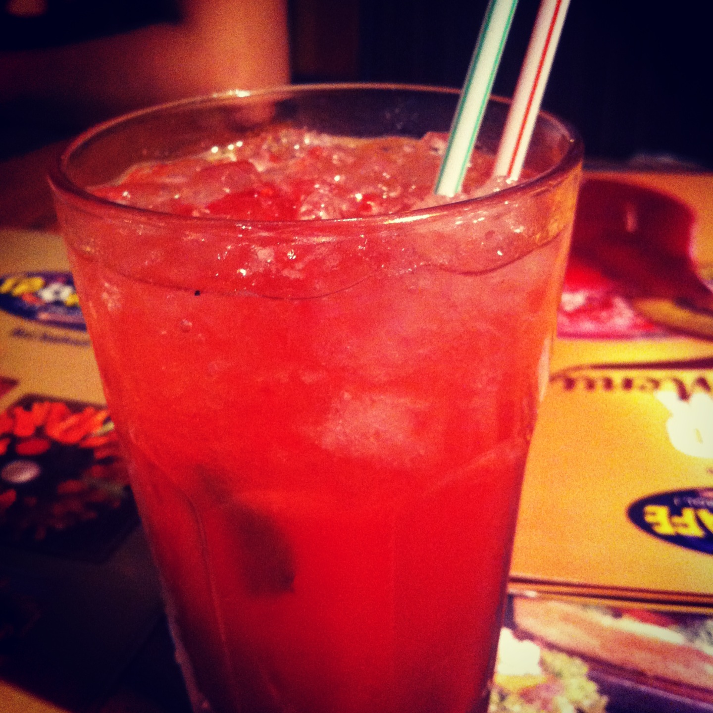 After Dark….Cuando oscurece me gusta tomarme un copete. Obvio, no siempre pero si carreteo obvio que si. Y no sé, como que me da cosa ponerme a tomar si todavía está de día. No es que nunca lo haya hecho pero admito que me siento rara haciéndolo. Prefiero esperar a que se vaya el sol. El de la foto es un mojito de frambuesa que me tomé en el Sport Café del Golf cuando fui a ver el partido de Chile con mis amiguis de francés este viernes.