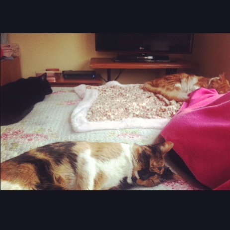 Antes que todo, les informo que hoy amanecí mucho mejor. Desperté a las 5.30 am porque tenía tos y en verdad no tenía muchas ganas de seguir durmiendo. Así que me levanté a darle comida a los gatos y me volví a acostar a ver tele mientras esperaba que mi mamá despierte para que me lleve desayuno a la camita.