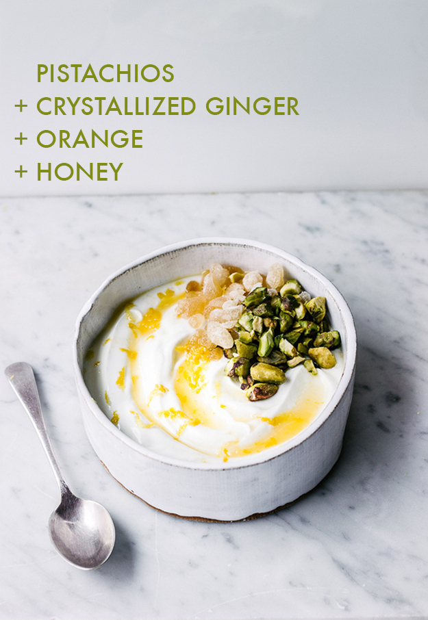 Pistachos + Gengibre Caramelizado + Naranja + Mielyogurt y pistachos