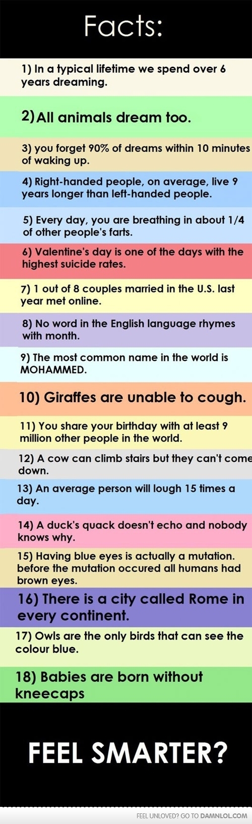 ¿Sabían que el dinero está hecho de algodón y no de papel? ¿Que el primer amor de Hitler fue una judía? ¿Y que dormir en el trabajo es algo bueno en Japón? Porque significa que estás cansado de tanto trabajar.