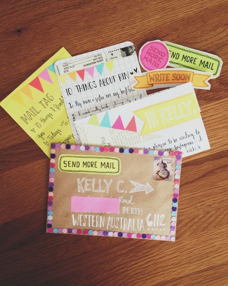 Hasta hace muy poco que me enteré del concepto de Happy Mail, es prácticamente lo mismo que el Snail Mail, o Correspondencia como se conoce en español. Y desde que me uní a swap-bot y me puse a enviar cuestiones que me di cuenta que hay algunas personas que realmente hacen obras de arte con sus correspondencias. Un verdadero Mail Art, otro concepto que no tenía idea que existía, pero que lo encuentro top. Tan top que obvia ya me hice un tablero en Pinterest con toda la inspiración que necesitaba para ponerme también a hacer sobres y cartas lindas para mis amigas y para la gente con quien me toca hacer intercambios.