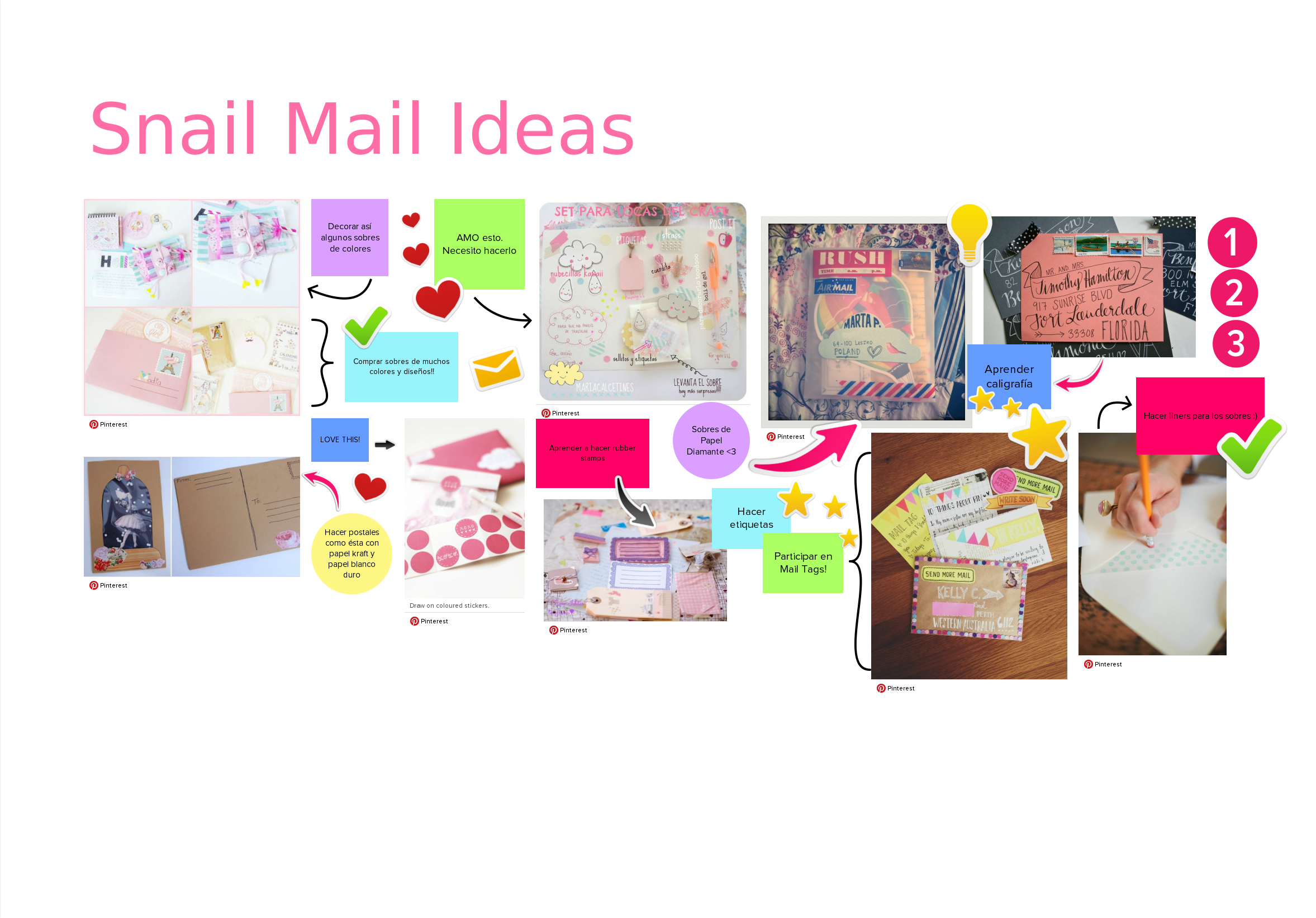 Ah! Y al fin encontré un buen uso para Mural.ly, esa página para hacer collages que les mostré hace un tiempo. Pude anotar todas las ideas que me gustan para el Snail Mail, así queda registrado y no se me olvida.