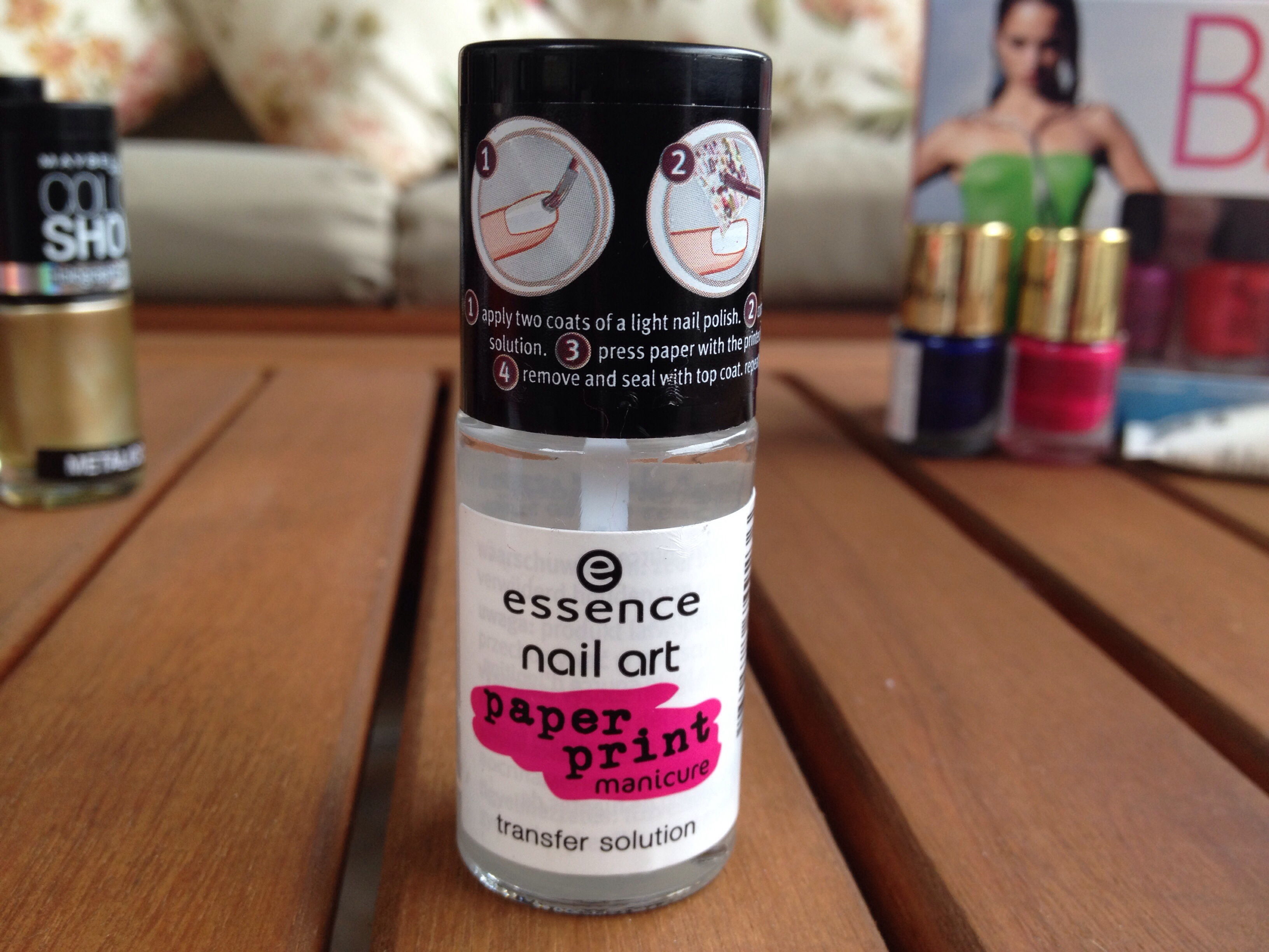 Este es el esmalte que se usa para transferir los diseños. Viene con alcohol, pero es especial para el papel. Lo bueno es que te sirve para cualquier otro papel que quieras usar, así que vale la pena comprarlo. Tampoco lo he usado aún y yo creo que lo haré recién como a mediados de la semana subsiguiente. Ayy, tanto esmalte por probar. Capaz que me salga el post en tres partes en vez de dos hehe.