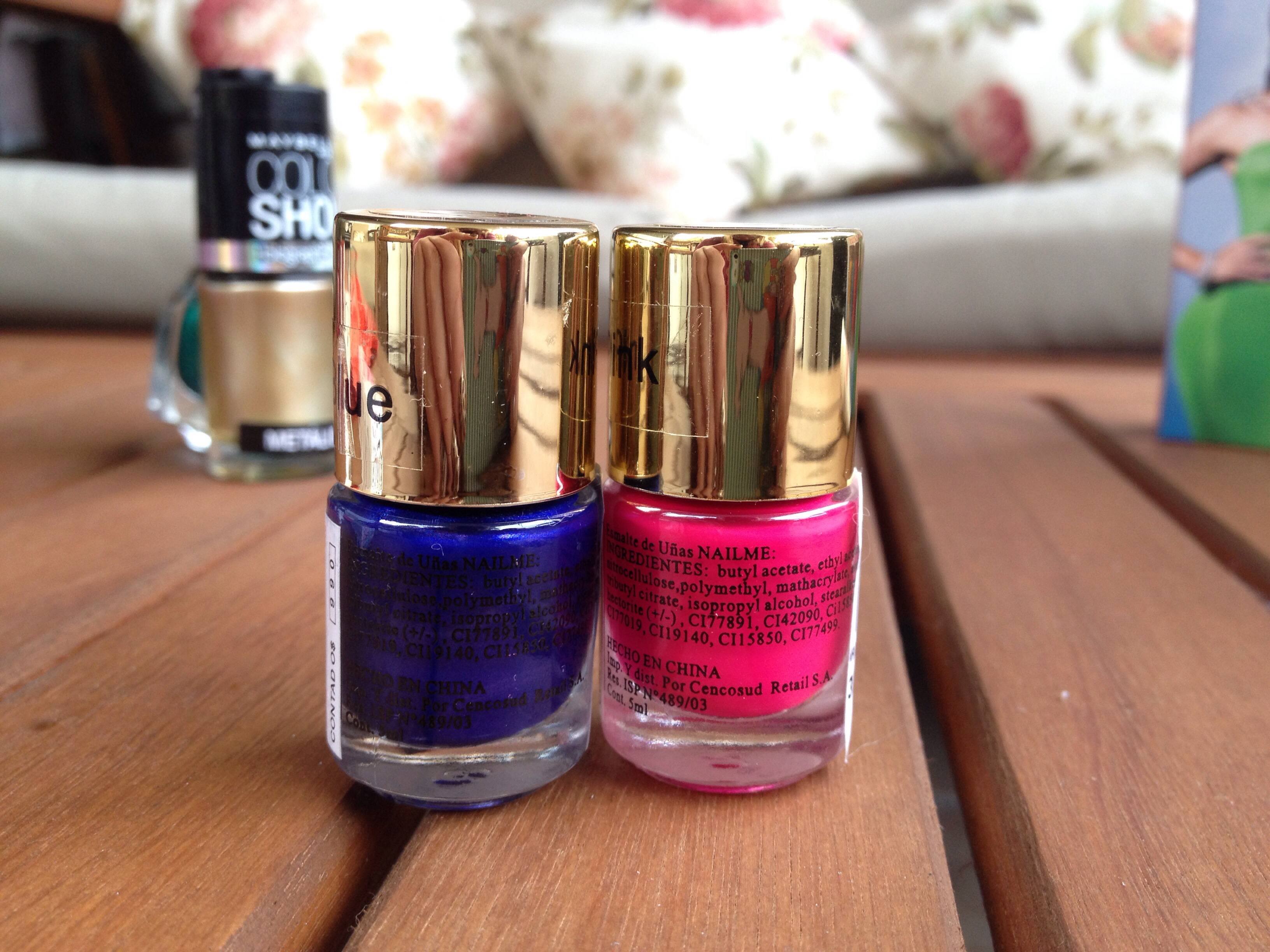 Estos esmaltes lo encontré en la caja de Almacenes París, cuando estaba comprando otras cosas. Cuestan luca, no tengo idea qué marca son o qué tal la calidad. Pero son lindoooos. Y me tincan buenos. Tenían ene pero ene colores. Yo los compré en la caja de París del Costanurri, en el primer piso, cerca de donde está DBS de la tienda.