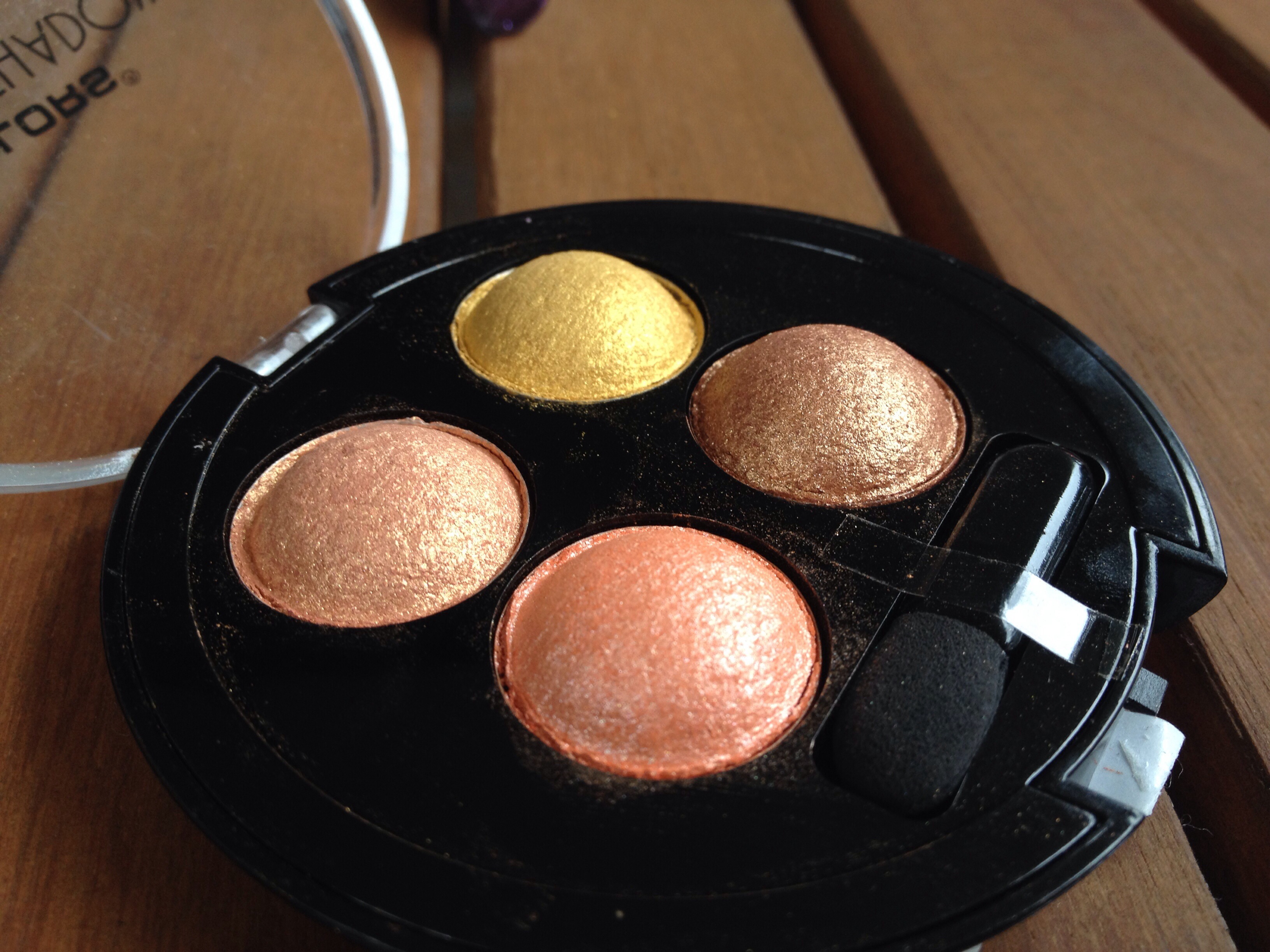 Ya, ahora el maquillaje. Como les había contado en otro post, Todo Moda ahora trae maquillaje L.A. Colors, yo el otro día me compré este set que se llama Baked Eyeshadow en verde primero (Color CBE 433 Asteroid) y me gustó tanto que me compré también el que ven en la foto, el color es CBE 428 Titan. Las sombras son muy buenas, aunque venden otras individuales que se ven malas y no me tincan mucho. Éstas son bacanes, aunque hay que aplicar bastante para que se note el color, no es como otras que el color queda altiro, pero igual con un buen primer te duran todo el día.