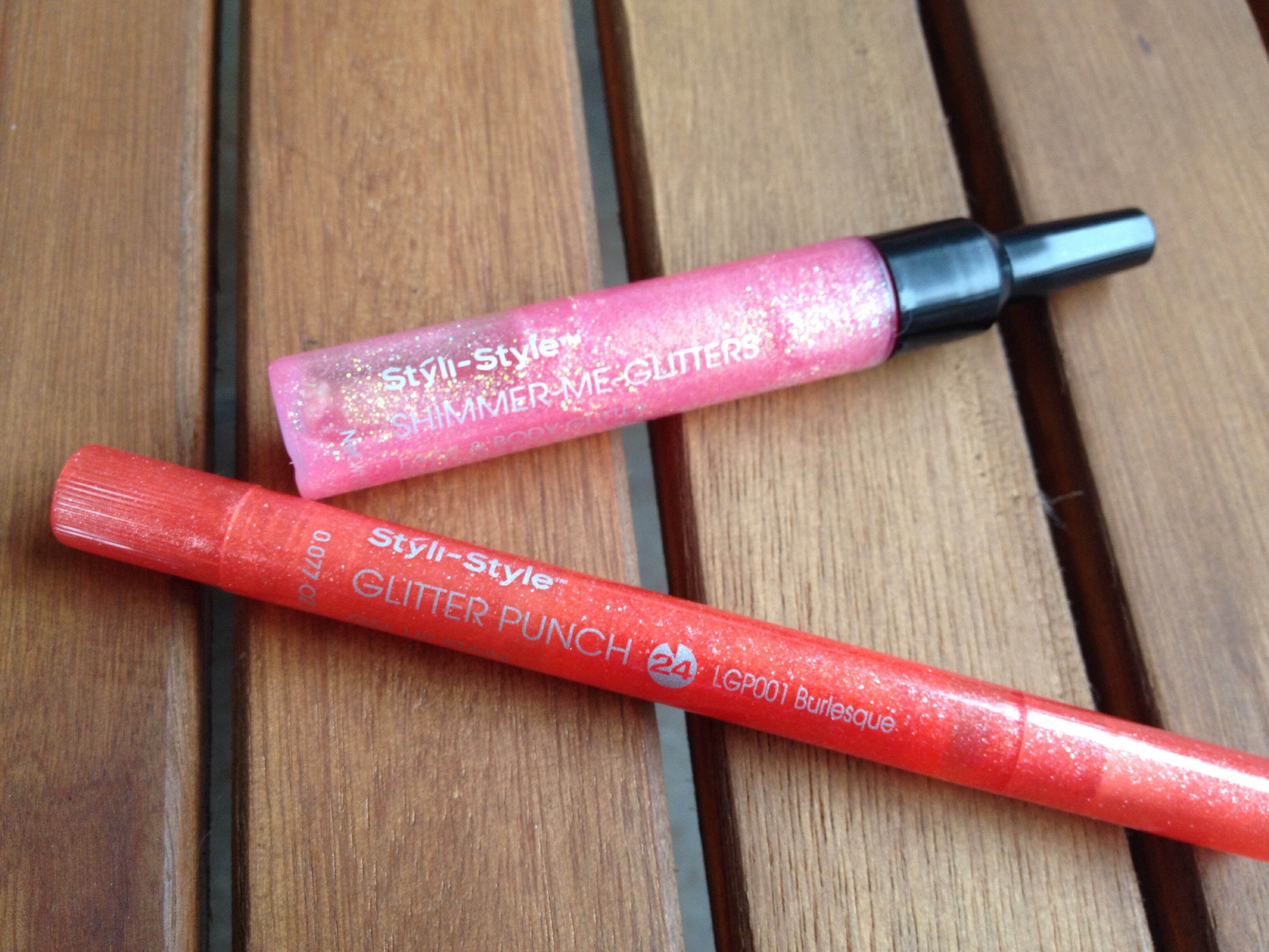 Estas cositas me las compré hace varios días ya. Lo de arriba es un glitter para la cara y el cuerpo. Hay en muchos tonos, son de la marca Styli-Style, que venden en DBS también.
