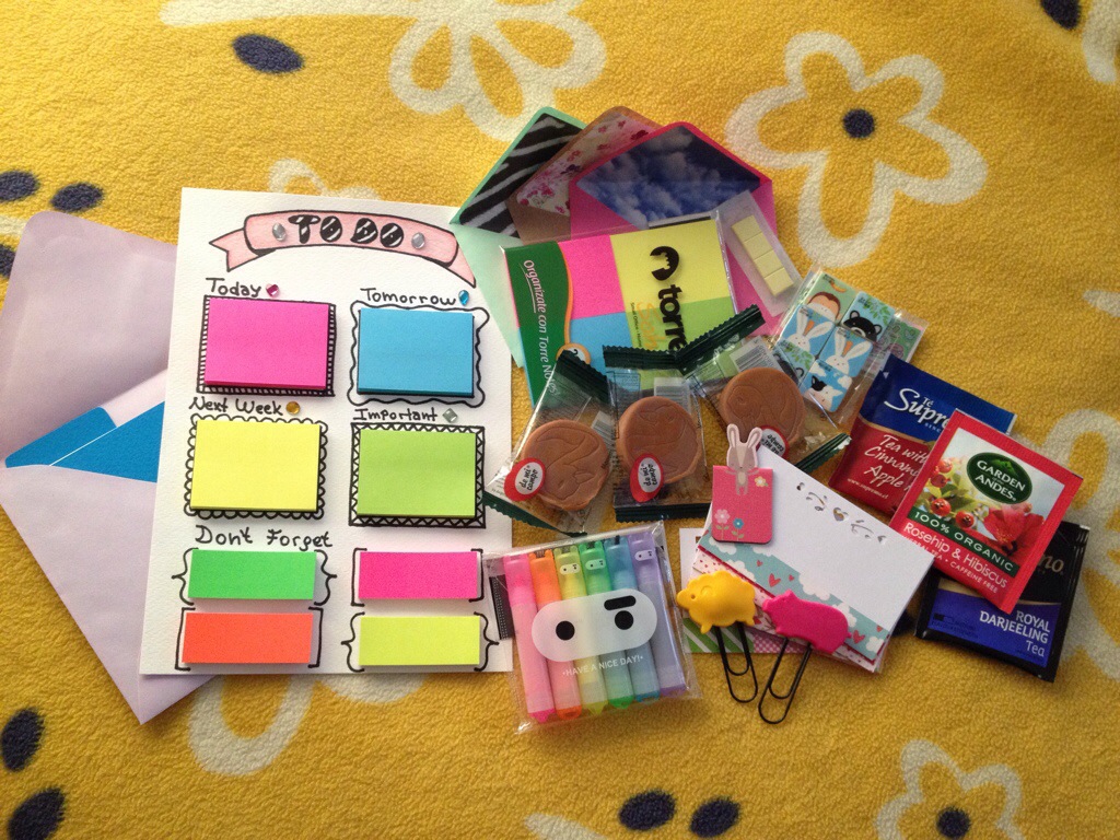 También me tocó enviar dos sobres con mínimo tres cosas a una niña en Alemania y otra en Los Países Bajos, olvidé tomar foto, pero a la de Alemania le mandé unas bolsitas de merkén porque dijo que le gustaba cocinar con especias, le envié unas moneditas de manjar, unos tecitos, unos clips y una cartita. A la de Los Países Bajos le envié una postal vintage, ya que dijo que le gustaban, unas moneditas de manjar, unos tés de hierbas, clips y una cartita.