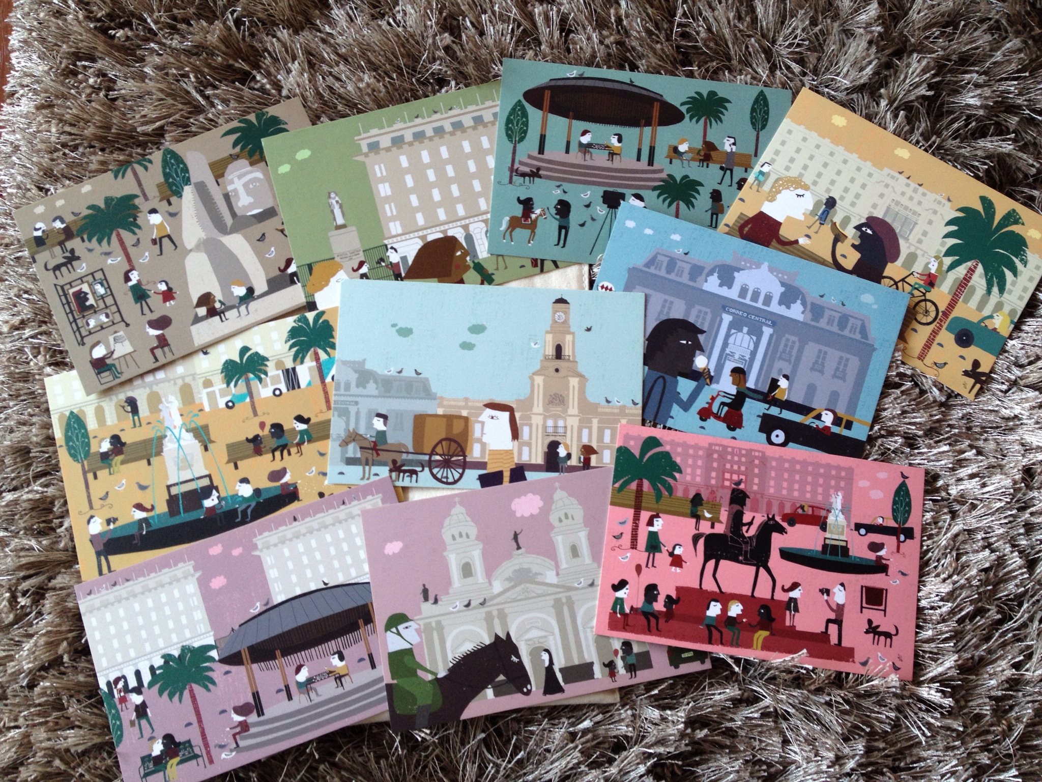 Esto es de la Galería Plop, pero lo compré en la tienda Kaikai en la Drugstore, es un estuche con postales de la Plaza de Armas de Santiago, todas con una ilustración hermosa.