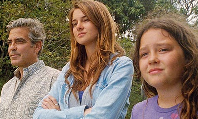 Matt no se transforma en el papá buena onda que hace estupideces para agradarle a las hijas, simplemente se mantiene todo el tiempo como el hombre con cara de “no sé que cresta hacer con estas cabras chicas” y le da más dinamismo a la película el hecho de que se entera de que su mujer le estaba siendo infiel y que tiene que tomar la decisión de vender un terreno que le dejaron sus antepasados.