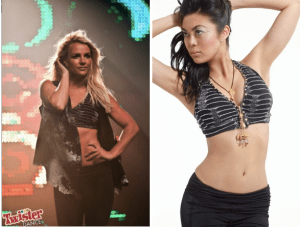 Britney ha estado twiteando fotos de ella en la grabación de un juego que está promocionando llamado Twister Dance. Donde además de salir regia, aparece usando un sostén deportivo, que no es un sostén cualquiera, éste cuesta US$20.000.