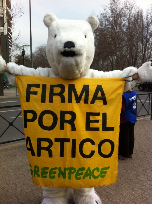 ¿Ya se encontraron con el osito de Greenpeace por las calles de Santiago? Yo el jueves pasado me lo encontré en Plaza Italia y le tomé esta foto, no puse mi firma porque ya la había puesto en mi planilla….pero fue super rico ver a tanta gente motivada con esta causa. Así que espero que también se animen a participar, yo lo encuentro super entrete y necesario.