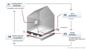 Mientras que la tierra se mueve, la casa levitadora se mantendrá quieta, protegida por el cojín de aire. Aparentemente 88 casas ya han sido implementadas con este sistema durante el invierno pasado.