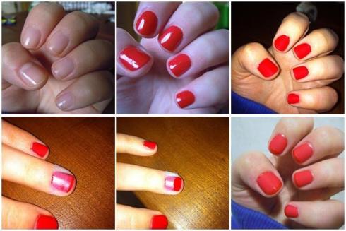 *Tips: Les recomiendo hacer esto con mucho tiempo, ya que hay que esperar a que se seque el esmalte rojo primero, luego el esmalte matificador, que si bien seca rápido superficialmente, el esmalte sigue estando húmedo por dentro y cuando estés segura que las uñas están bien secas, hacer el último paso con el scotch.