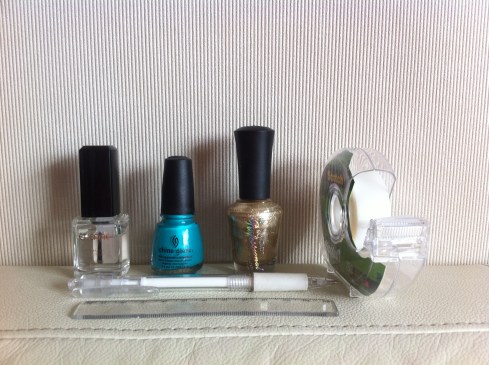 *Nota: El esmalte verde viene con un pincel delgado, y el negro se usa para dibujar con un pincel delgado, yo los intercambié para este tutorial y después los límpié y no pasa nada. Pero hay que tener cuidado de mantener los esmaltes cerrados para que no se sequen.