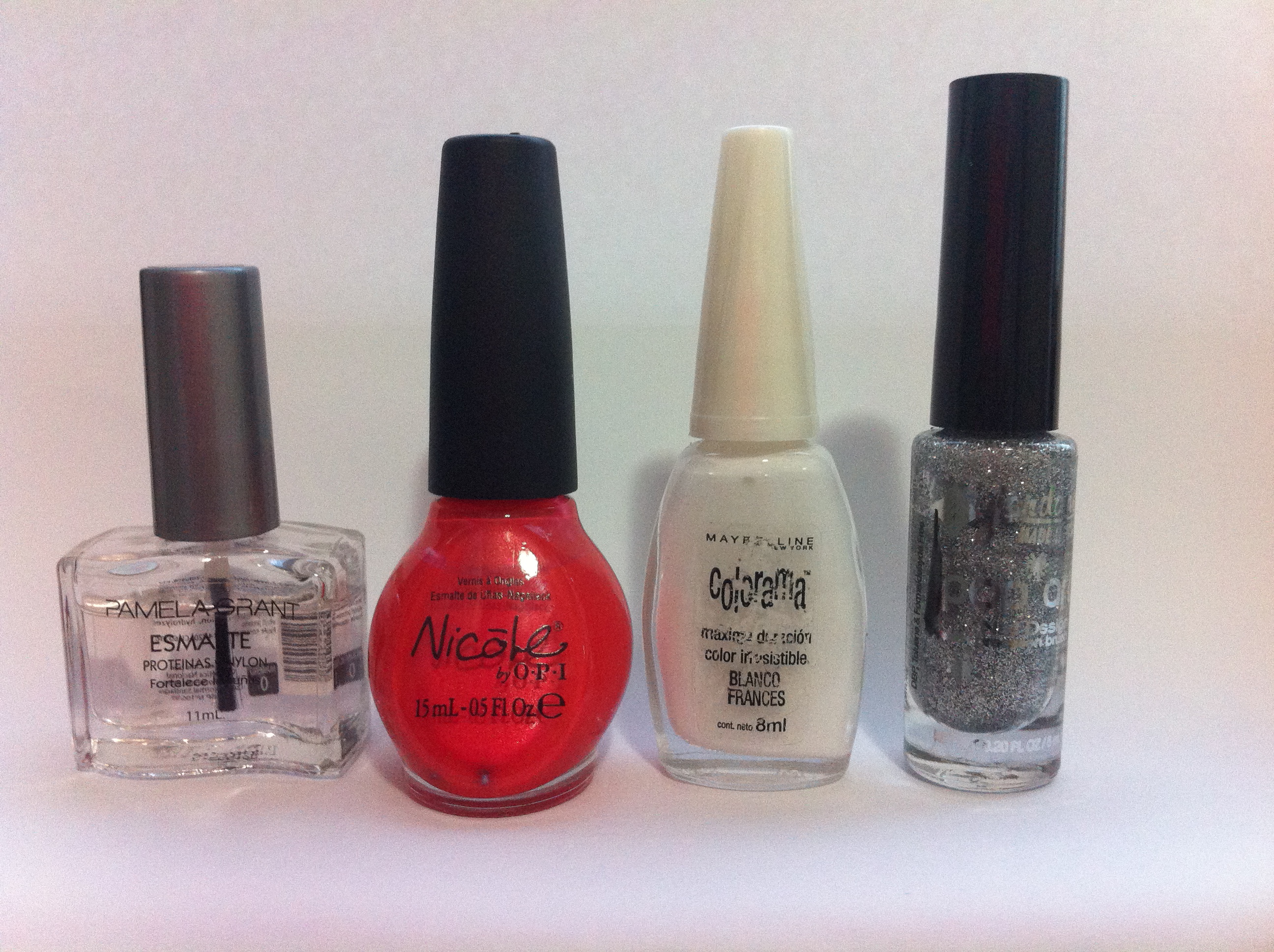 6. Esmalte blanco/plateado con glitter. Yo usé un O.P.I., You’re a Star.