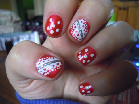 Y listo! Eso es todo. Si van a hacer este diseño, les recomiendo tener mucho tiempo. Yo por lo general aprovecho de pintarme las uñas mientras estoy en el computador porque así no las paso a llevar con nada y sigo trabajando mientras se secan. De todas maneras yo me demoré dos horas, obviamente entremedio hablé por teléfono y otras cosas, pero de que toma tiempo, lo toma. Lo bueno es que no hay que esperar mucho a que se sequen las uñas y duran un montón.