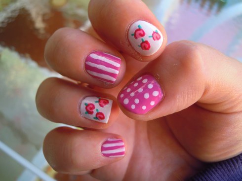 Lo que me gusta de este diseño es que es fácil pintarse la mano derecha (o la izquierda si eres zurda) y no queda tan terrible. Así es como quedó mi mano derecha: