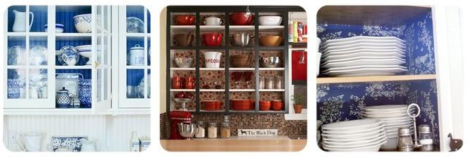 1. Algo más económico y simple es pintar los muebles por dentro, de un color que contraste con la parte exterior del mueble. Incluso si notas que tus muebles están gastados, puedes aprovechar de pintarlos por completo. Y si tu loza es de cierto color, nada mejor que hacer que los colores combinen con ésta.