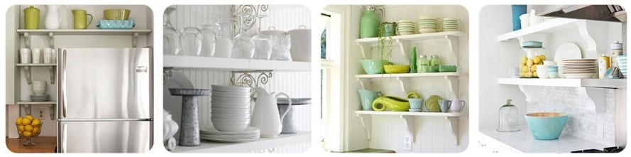 2. Esta idea me gusta porque es mas bien clásica y se ve simplemente hermosa. Si tienes o compras escuadras de repisas, bastará con pintarlas de blanco, junto con una madera blanca y poner tu loza, again, blanca sobre ellas. También puedes optar por loza colorida, pero asegúrate de llamar la atención hacia las escuadras, un elemento muchas veces olvidado, pero que puede ser realmente hermoso.