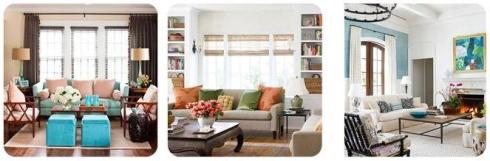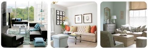 1. Voy a mostrarles varias combinaciones de colores que me parecen interesantes. Me gusta el celeste para un living, si es un lugar espacioso por su puesto, puedes usar tonos celeste oscuro o claro, o verde agua, combinarlos con blancos o madera y elegir cojines o una alfombra llamativa que le de vida al lugar.