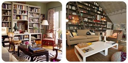 2. Adoro esta idea, al igual que en las librerías, si tienes una casa grande, con muros muy altos, por qué no usar una pared entera como librería. Si tienes muchos libros, colecciones y objetos que mostrar, basta con llenar un muro de repisas, poner una escalera para sacar lo que necesites y listo. Es algo poco común y muy muy muy lindo.
