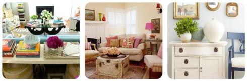 3. Esta es una muy buena idea para espacios pequeños, si no tienes el espacio para poner una mesa de centro, puedes apoyar un mueble en algún espacio disponible de la pared. Si necesitas espacio extra de almacenaje, compra un mueble con puertas y cajones, donde puedas guardar libros o manteles, cubiertos, etc. Y decóralo con un lindo macetero, lámpara o cualquier objeto lindo de decoración.
