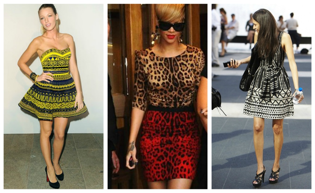 Por lo general no soy muy fanática del estampado, a menos que sea animal print, algunos estampados floreados o estampados tribales, como los que ven en la foto y que van a estar muy de moda esta primavera. Pero a pesar de que el estampado no es algo que me vuelva loca, reconozco que me gusta mucho como le queda a varias. En cambio hay veces en las que me encuentro con gente que lleva tanto estampado que me dan ganas de sacarme los ojos, así de espantosos han sido algunos casos que he visto.