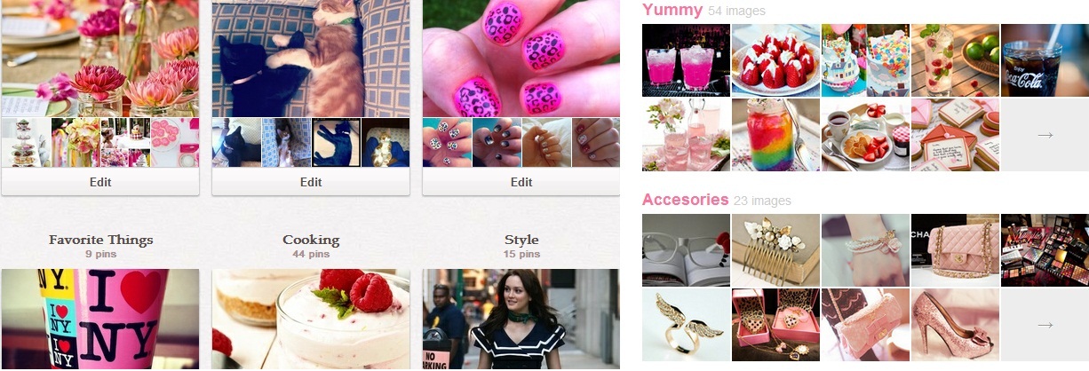 Bueno, el asunto es que como soy fanática de las redes sociales, obvio que yo cuento con ambos. We Heart It lo tengo hace más tiempo y es donde paso gran parte de mi tiempo buscando la imagen perfecta para algún post o simplemente seleccionando fotos que me gustan para mi colección. Pinterest lo retomé hace poco porque es tanta la información, que podría pasar horas entretenida viendo y seleccionando todo lo que me inspira y quiero crear.