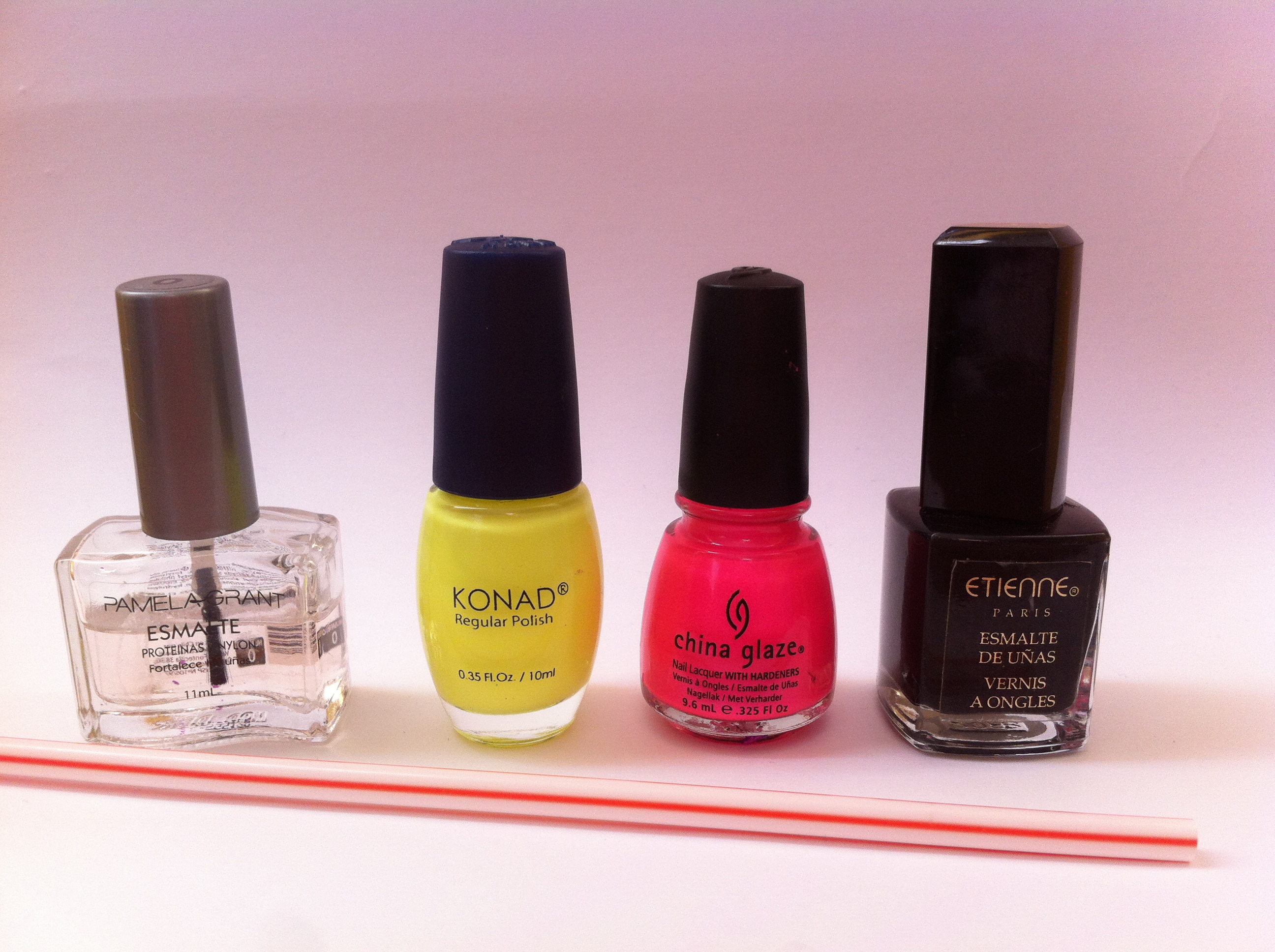 5. Pincel delgado, yo usé el de este esmalte con glitter que compré en Preunic.