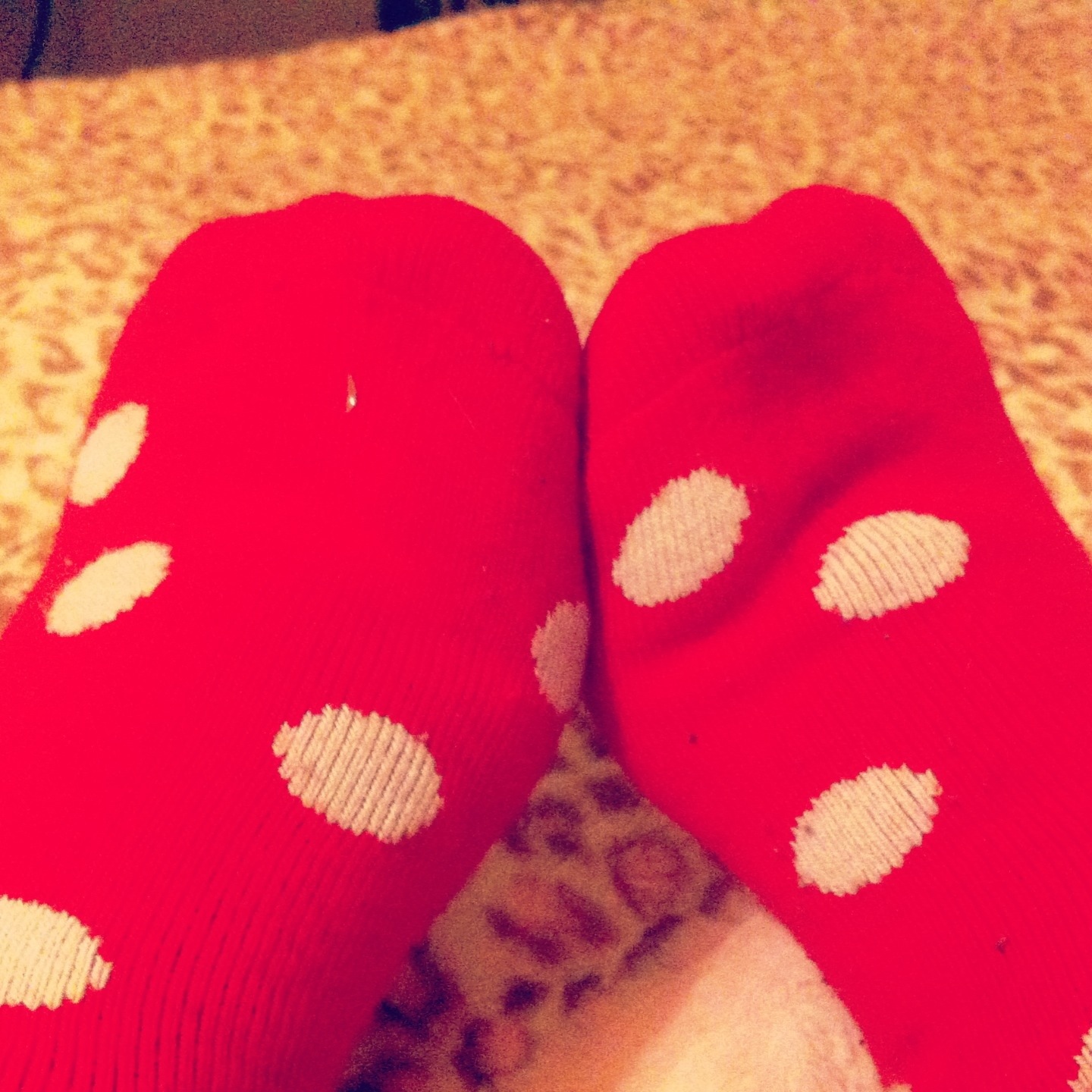 red white or blueDía #4. Red, white or blue. Este día era el 4 de Julio, así que se celebraba el día de la independencia en USA, yo elegí postear mis nuevos calcetines rojos que me dejó mi amigui Kristen para que duerma calentita en la noche. Son lo máximo.
