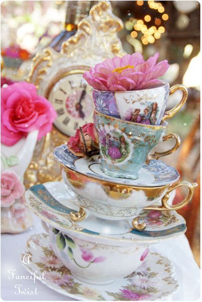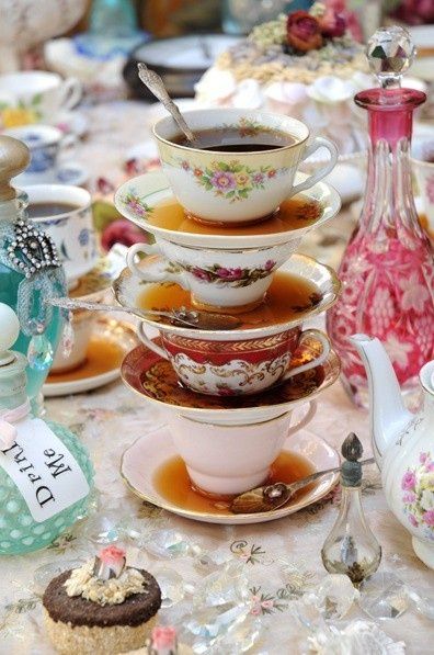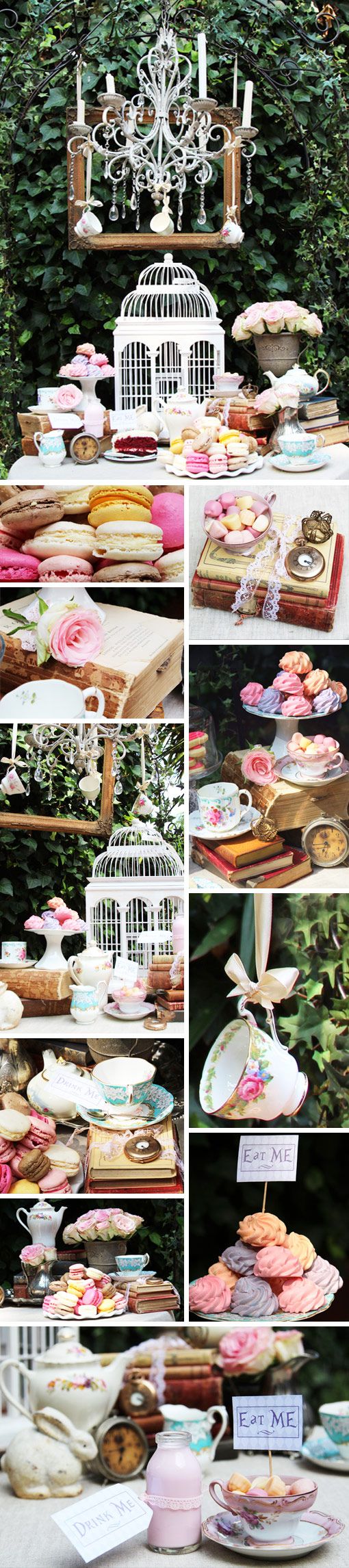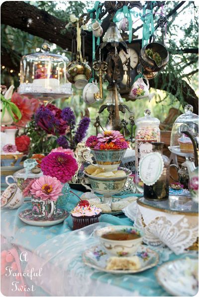 Si hay algo que me obsesiona es todo lo relacionado a las fiestas. Y si se trata de una fiesta de té, con tacitas bien fancy y todo bien shabby chic y súper girly les juro que me puedo morir de ternura. Me encantaaaaa. El otro día mi mamá dijo que quería comprar unas tacitas de porcelana así bien rococó y yo le dije que sería bacán porque podríamos hacer un tea party como en Alicia en el País de las Maravillas. Y OBVIA que me puse inmediatamente a buscar ideas en Pinterest, hasta el punto en que creé un tablero con casi 200 pines haha.