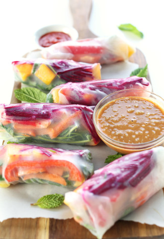 Arrollados de Primavera de Arcoiris con Salsa de Gengibre y Maní
