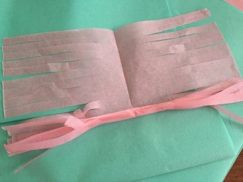Una vez que lo doblan, van cortando flecos y dejan un par de centímetros sin cortar (ahí es donde está el doblez).