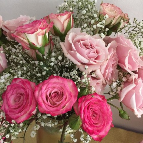 Esas mini rosas las compré en el Jumbo y las ramitas con florcitas blancas también.