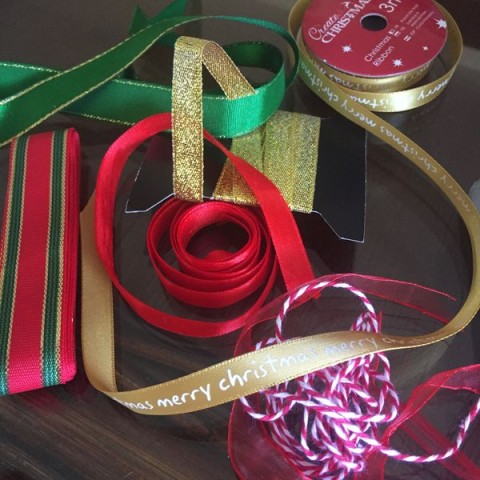 Y luego escogí cintas para poner en los agujeros que tienen las hojas, ya que se supone que es para archivador, así que lo decoré con cintas navideñas.