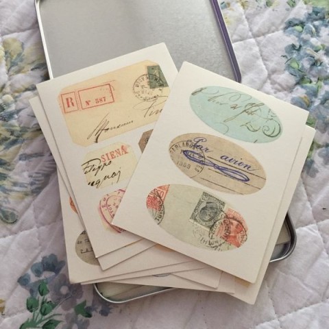 Postales con etiquetas antiguas, de Book Depository.