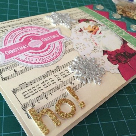 Agregué un par de detalles finales como esa etiqueta del Viejo Pascuero que saqué de Orange You Lucky, un par de stickers que tenía por ahí y el set de die cuts que me salvó ene.