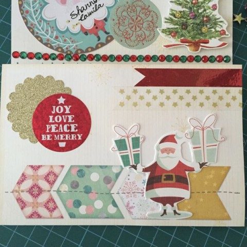 Así lo dejé. Usé unas letras con glitter que me regalaron en un swap, unos copos de nieve que compré en Scrapbook Hobby y algo de bling bling que también me regalaron en un swap hace mucho tiempo.