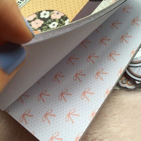 Este fue uno de mis ítems favoritos. Es un block con 5 páginas de stickers, que como pueden leer, tienen folea dorada y son la vidaaaa, los amé.