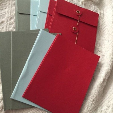También amé estos sobres con hilo para amarrarlos, demasiado lindo. Vienen 6 sobres, en 3 colores. Además vienen 6 tarjetas, también en 3 colores. No recuerdo cuánto me costaron.